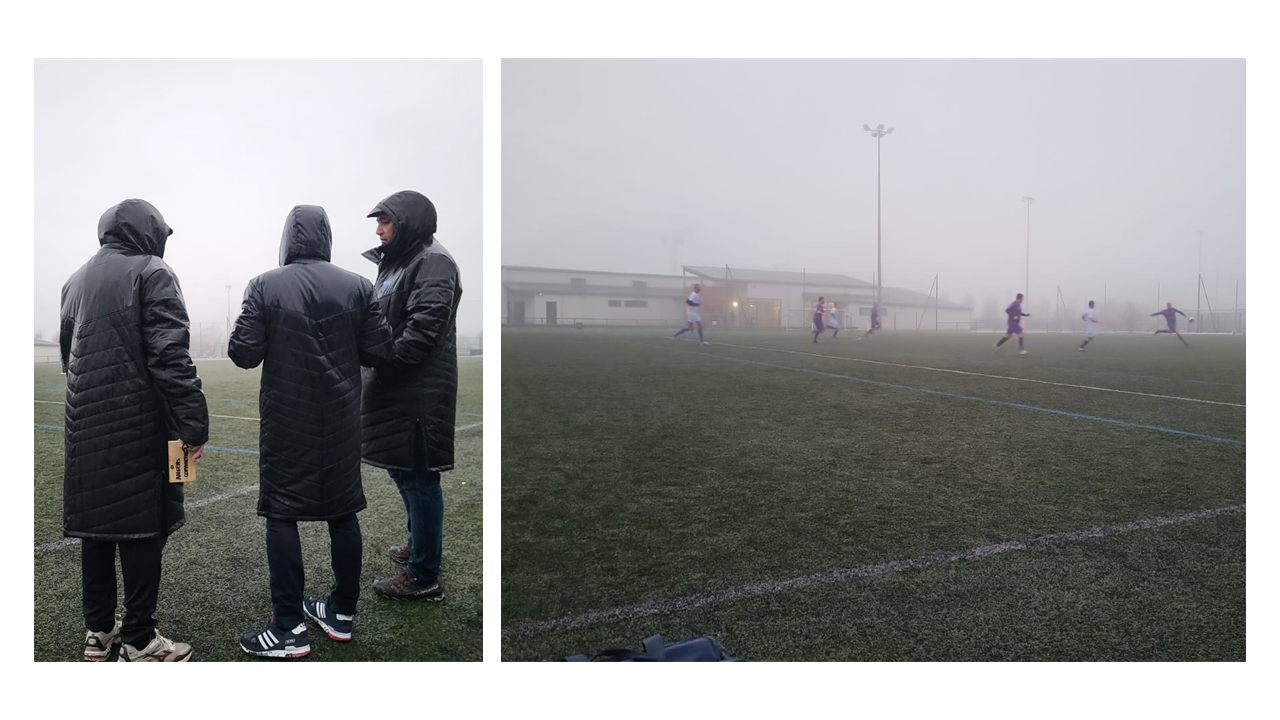 Malgré un effectif amoindri et des conditions météos épouvantables (pluie intense, froid, brouillard par moment), les guerriers du jour mettent rapidement le pied sur le ballon face à une équipe elle aussi amondrie et rapidement dépassée dans le jeu. Difficile tout de même de trouver la solution dans une premiere demi-heure où nous manquons une ou deux occasions. La délivrance arrive par le biais d'une belle chevauchée de Salim qui ouvrait le score (1-0). Quelques minutes avant la mi-temps, Vincent vient faire le break d'une belle frappe au ras du poteau. Mi-temps sur le score de 2-0.